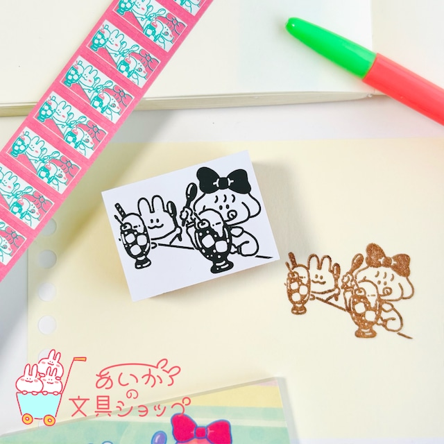 はんこ 思い出クリームソーダ うさぎと女の子がクリームソーダを飲んでいるのイラストが描かれたはんこです。 手帳のお供にいかがでしょうか? サイズ(mm):40×30 持ち手高さ(mm):25 印面:ゴム 個数:1個 ※ロゴは手作業で押しているので個体差がございます。 #ハンコ #はんこ #スタンプ #クリームソーダ #メロンソーダ #うさぎ #女の子 #レトロ #スイーツ #喫茶店 #カフェ #かわいい #ハンドメイド文房具 #イラスト #手帳デコ #手帳デコ素材