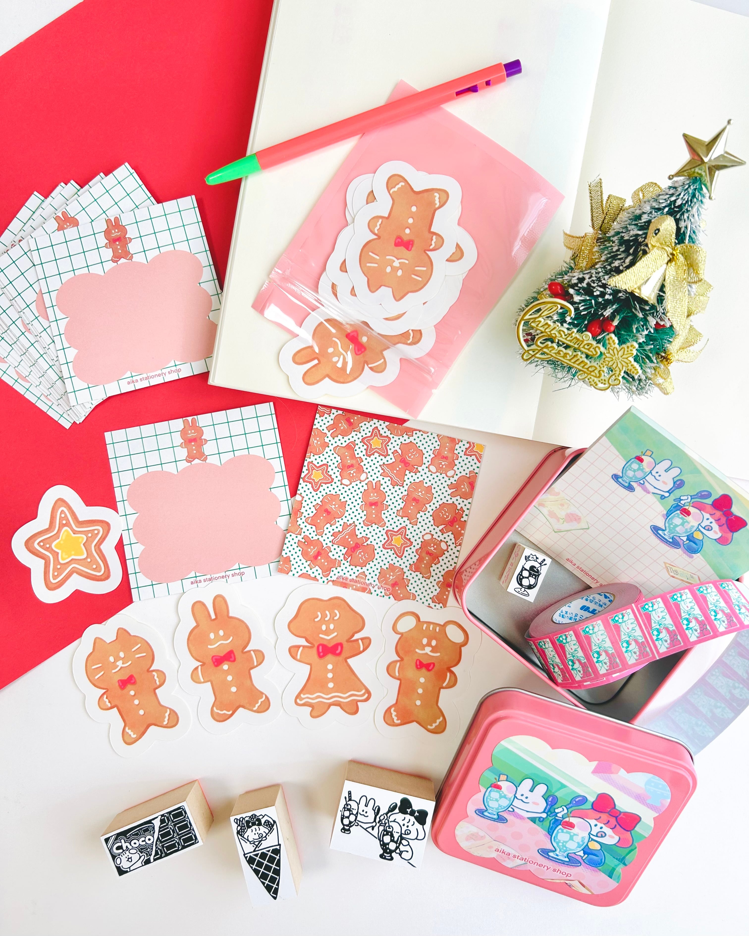 【クリスマス】メモシート&シール セット クリスマスにも使える両面印刷のメモシートとジンジャークッキーのシールのセットです。 メモシートはプレゼントやサンタさんへのメッセージ等にも使えます。 シールは大きめなのでプレゼントや手帳デコのアクセントにも使えます。 手帳やプレゼントのお供にいかがでしょうか? サイズ(約mm) ・メモシート:80×80 ・シール:星 55×55 女の子50×65 うさぎ:50×70 いぬ:45×65 ねこ:45×65 個数 ・メモシート(両面印刷):20枚 ・シール:5種×3枚(計15枚) 素材:紙 (メモシートは少し厚めの紙です。) ※商品の色や形状は画像と多少異なる場合があります。 ※業者印刷です。 ※湿気の多い場所、高温・多湿な場所での保管はお控えください。 ※シールはカッティングマシン等でカットしている(印刷は業者です)ため、形にムラがあります。 #シール #メモ #メモシート #ジンジャークッキー #クッキー #うさぎ #女の子 #ねこ #いぬ #レトロ #スイーツ #喫茶店 #カフェ #かわいい #ハンドメイド文房具 #イラスト #手帳デコ #手帳デコ素材 #クリスマス #メリークリスマス