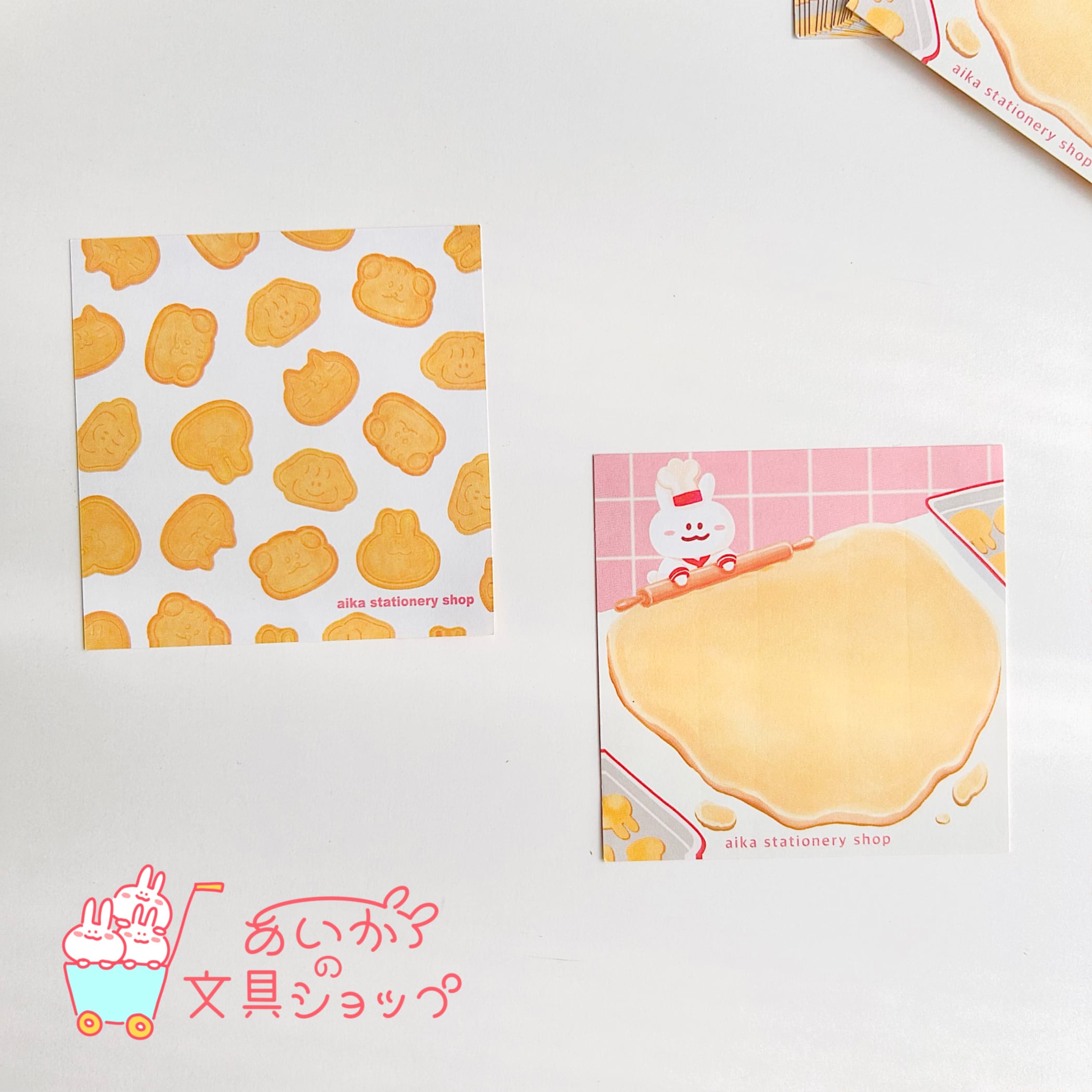うさぎがクッキーを作っているイラストが描かれたメモシートです。