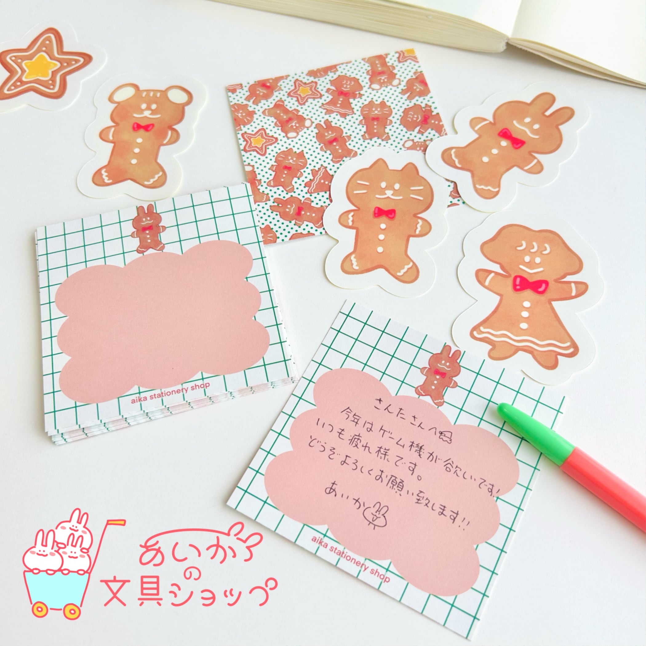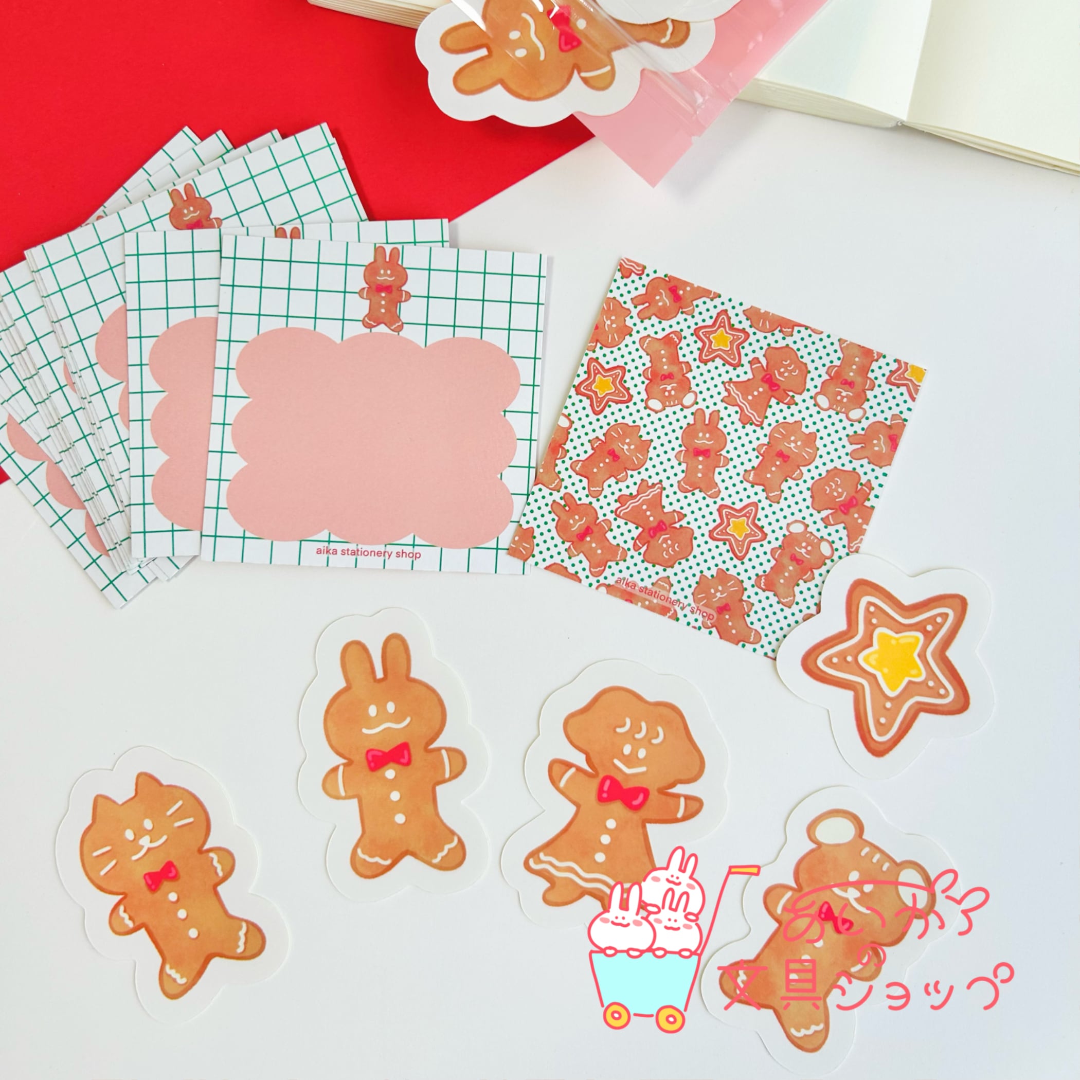 クリスマスにも使える両面印刷のメモシートとジンジャークッキーのシールのセットです。