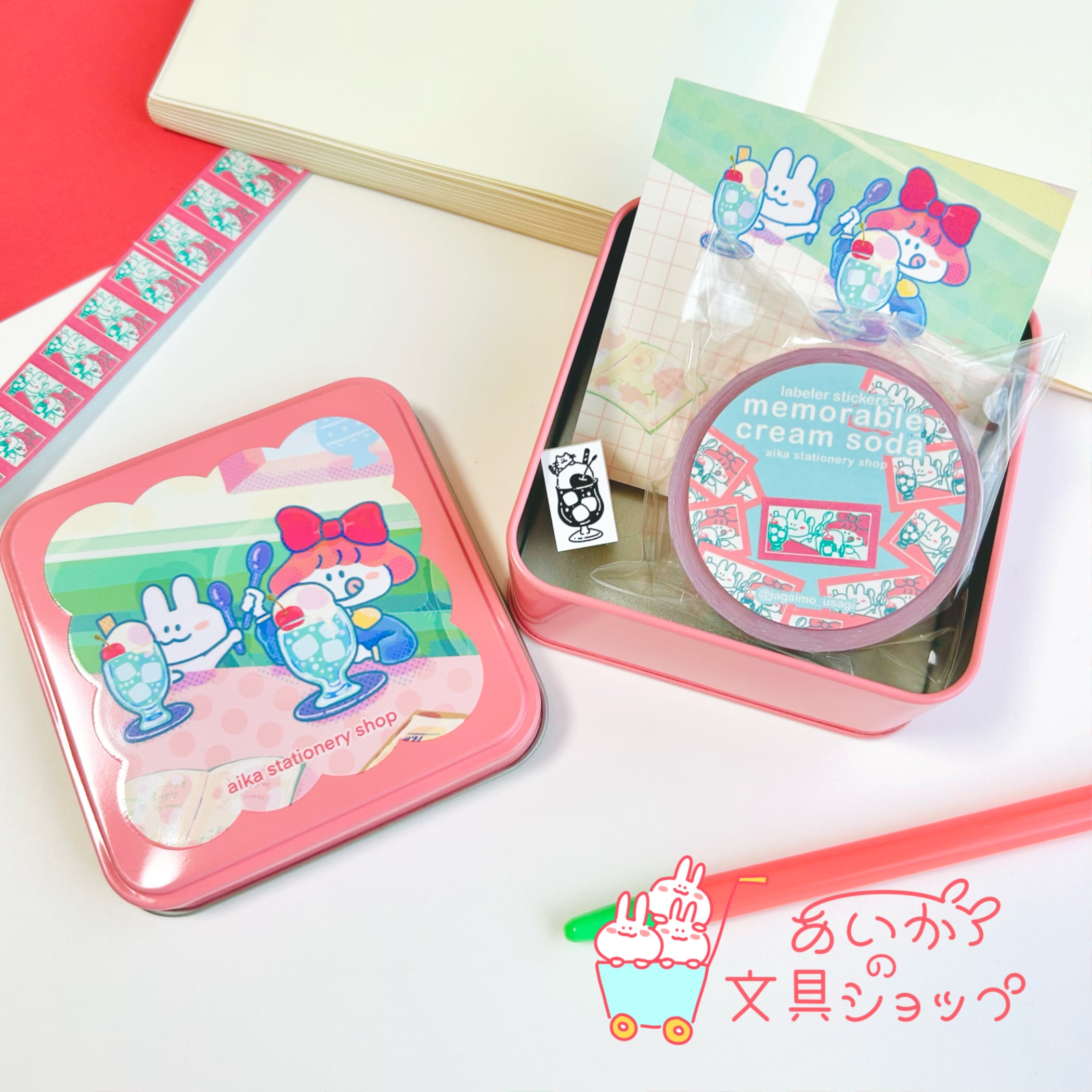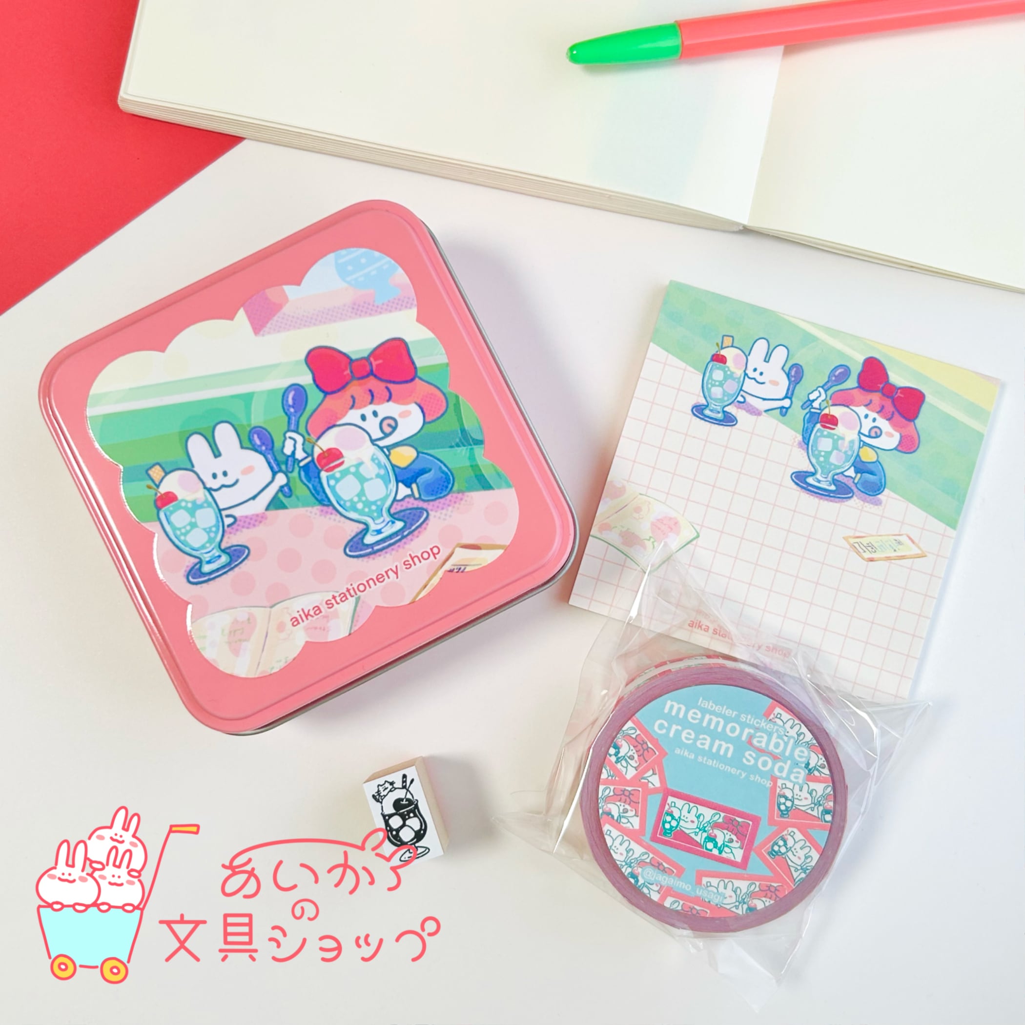 【思い出クリームソーダ缶】メモパッド&ラベラーシール&ミニはんこ