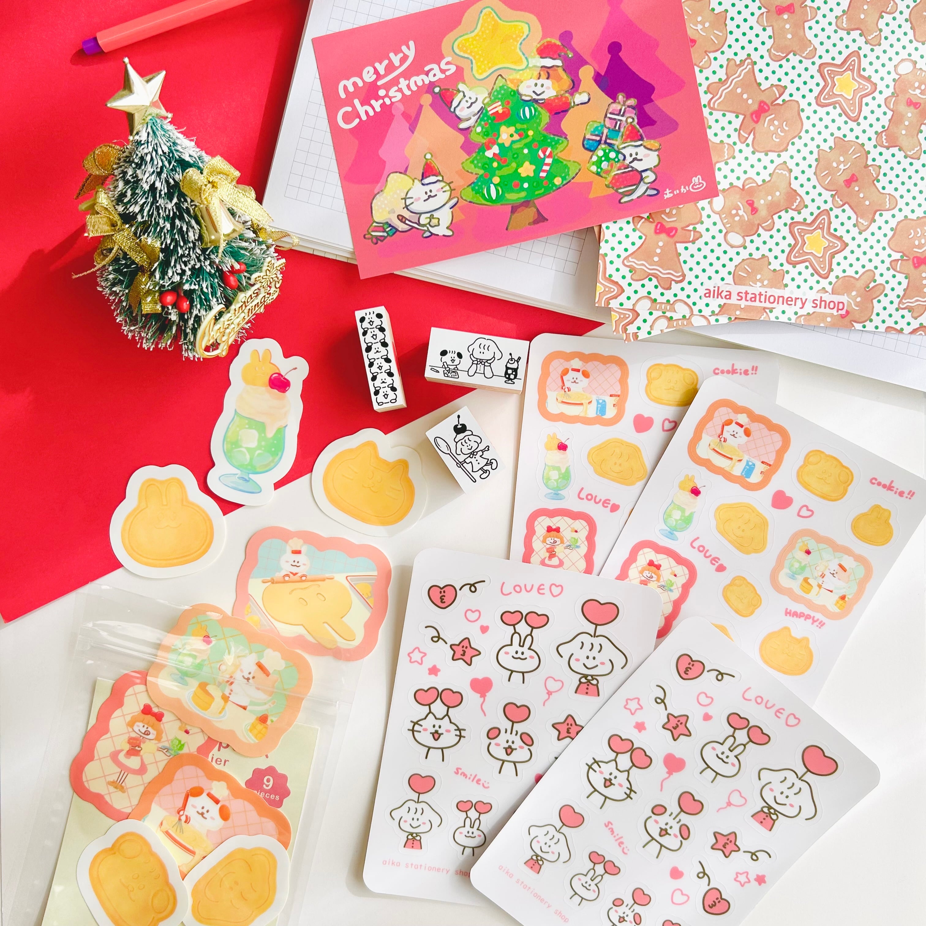 はんこ3種/シールシート2種/ステッカーパック/クリスマスA5ペーパー4枚/クリスマスポストカードのお得なセットです。