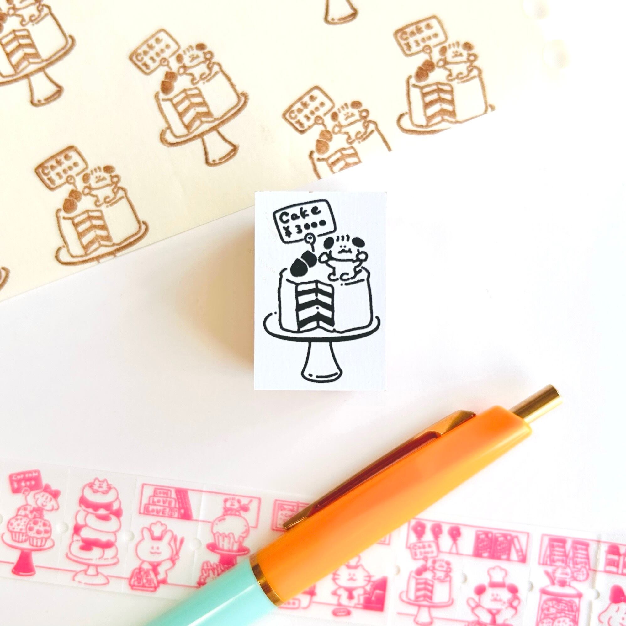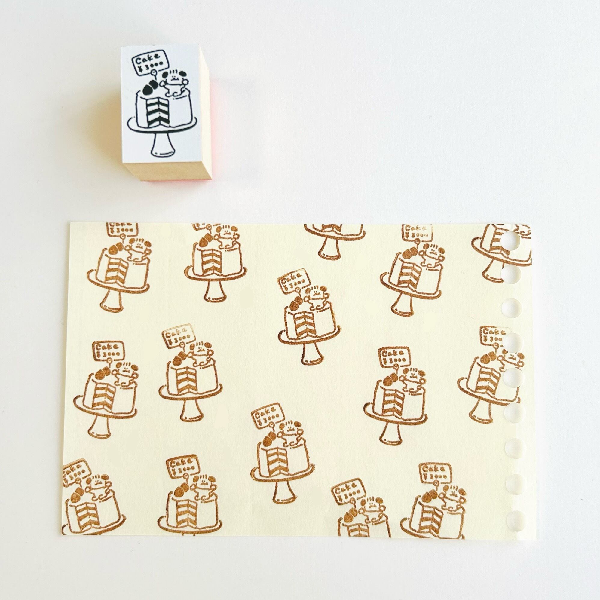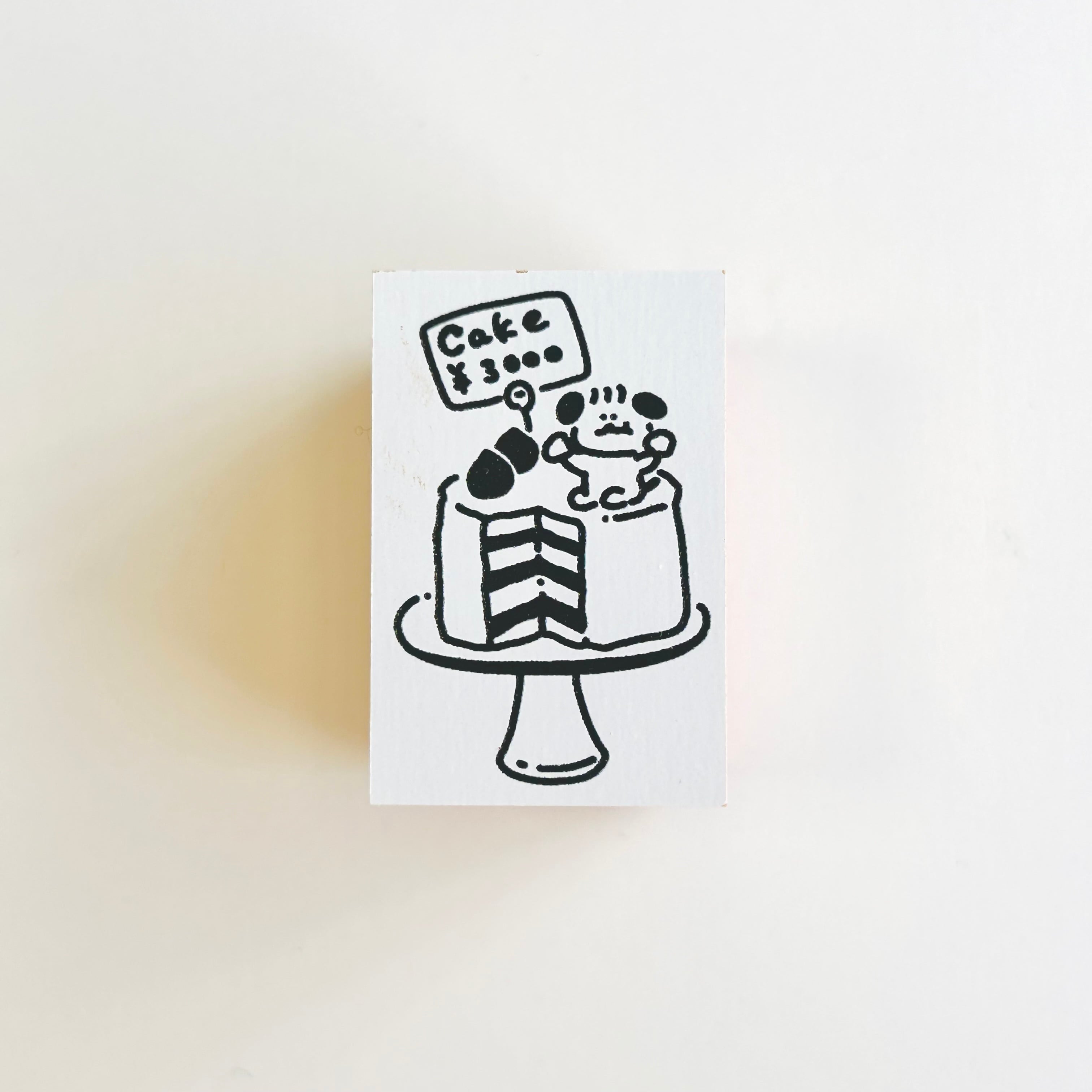 ケーキと犬のイラストが描かれたハンコです。