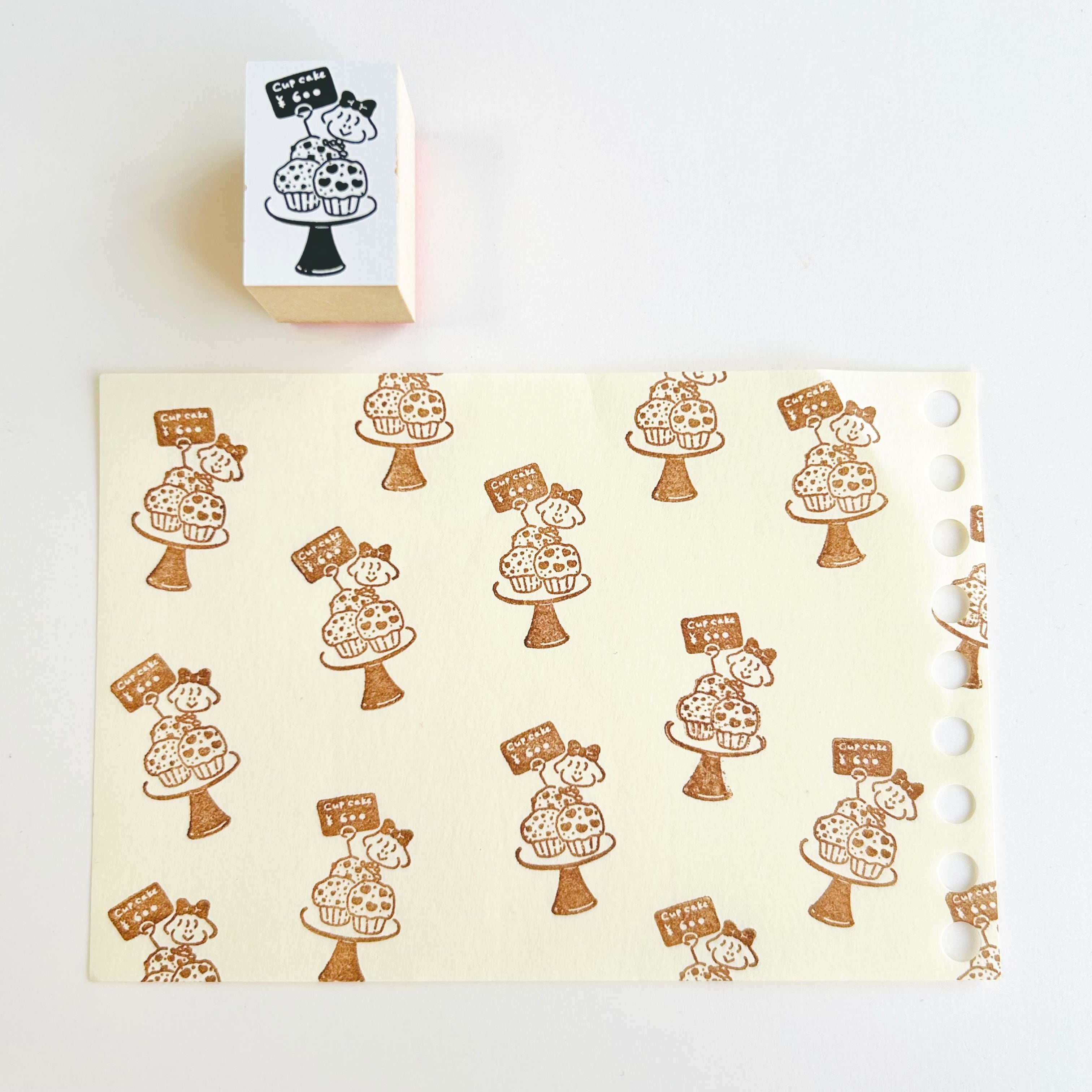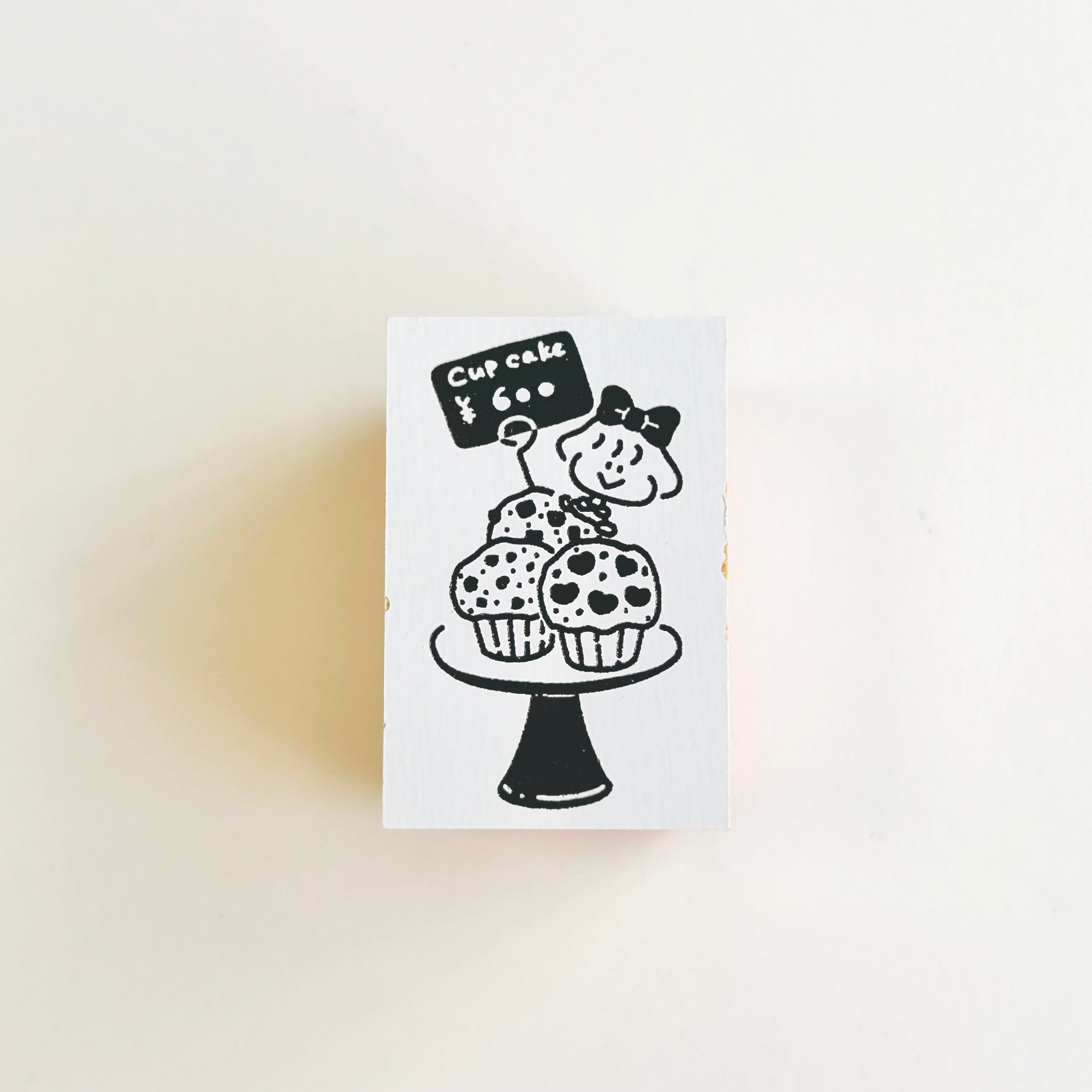 カップケーキと女の子のイラストが描かれたハンコです。