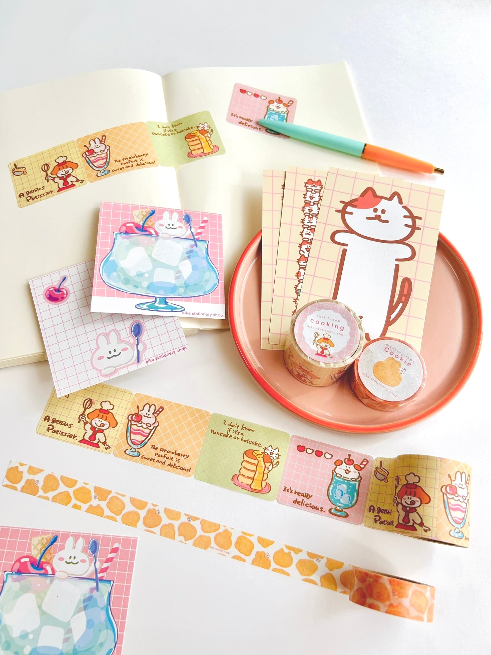 #ロール付箋 #ロールシール #付箋 #ポストイット #パティシエ #スイーツ #カフェ #クリームソーダ #パフェ #パンケーキ #女の子 #うさぎ #ねこ #うさぎ #かわいい