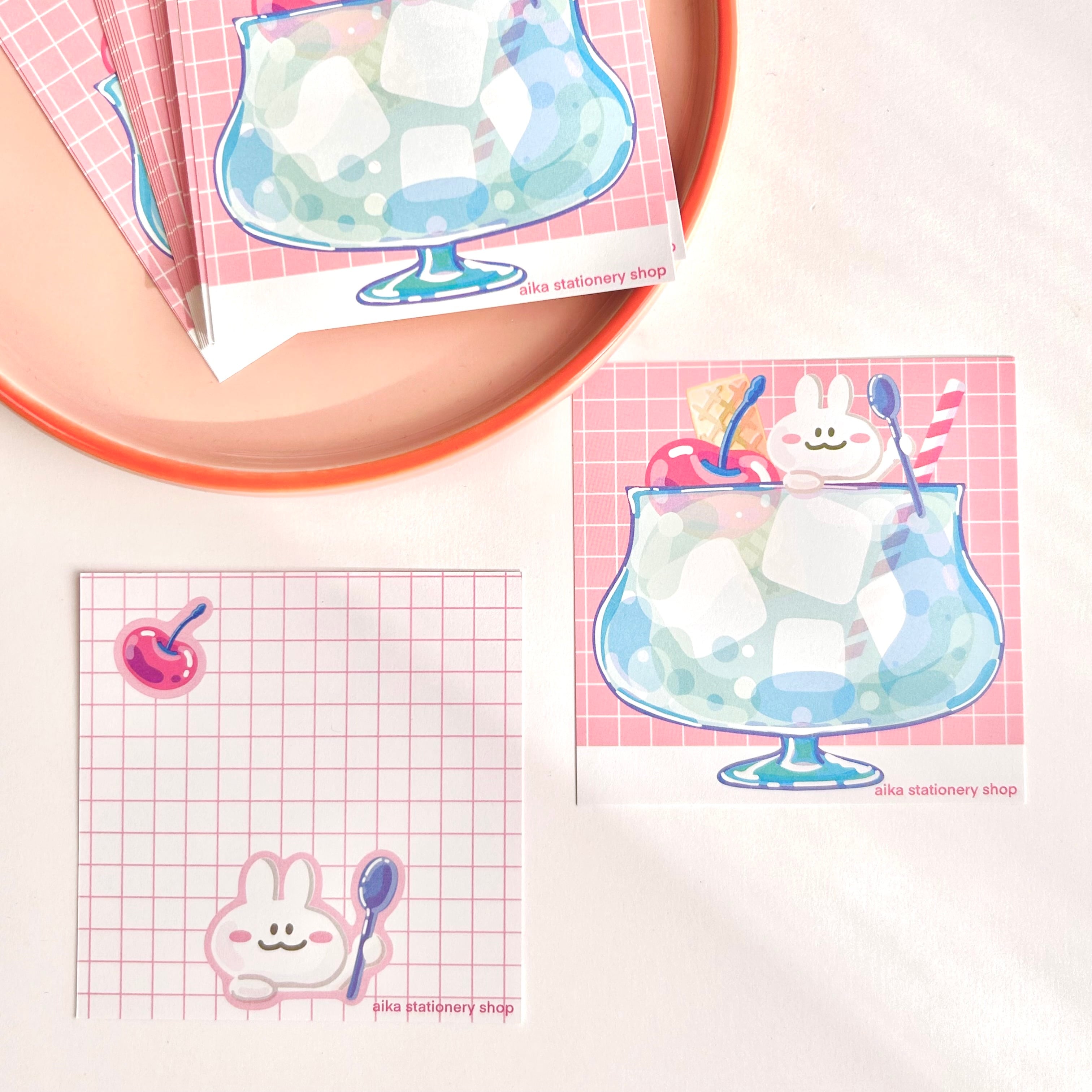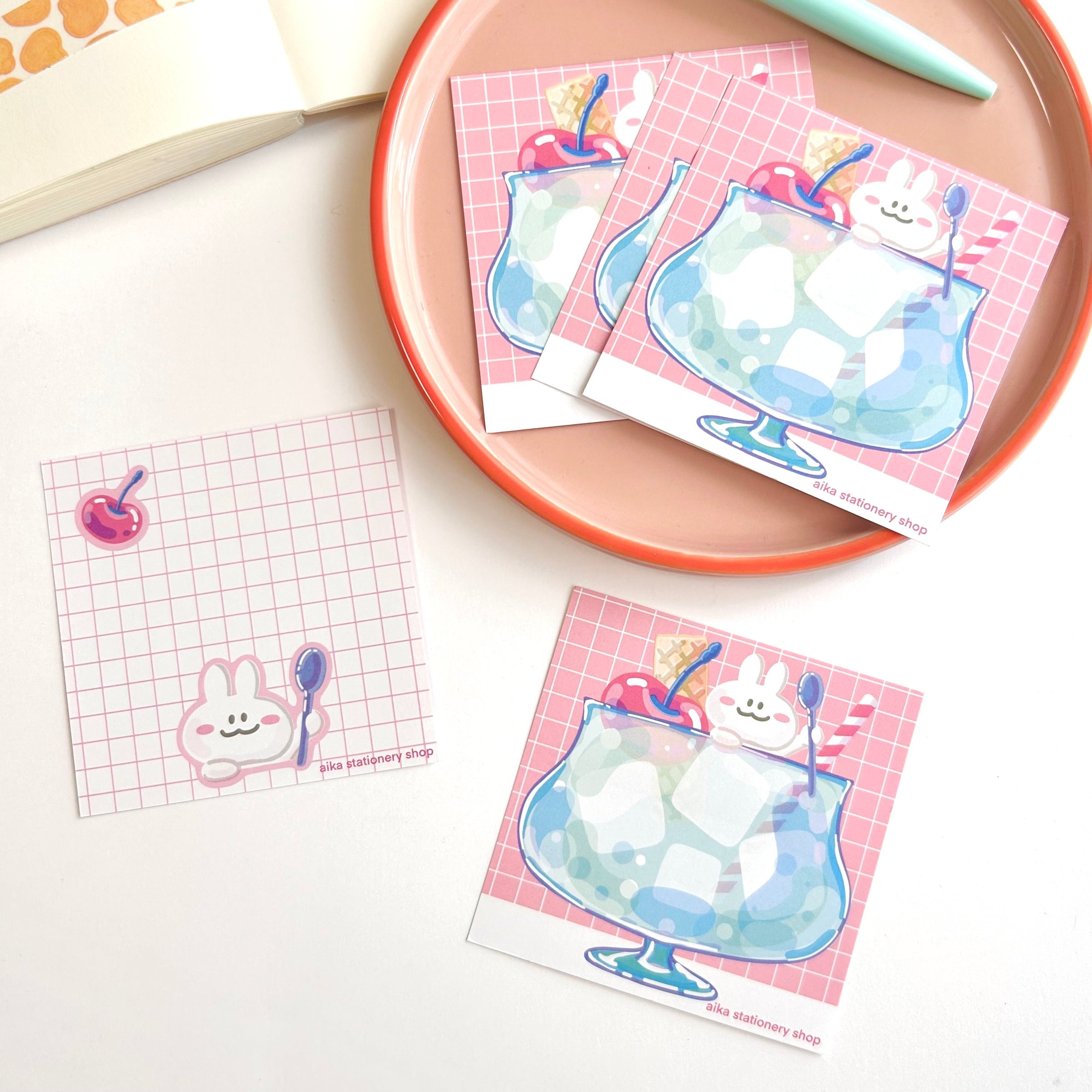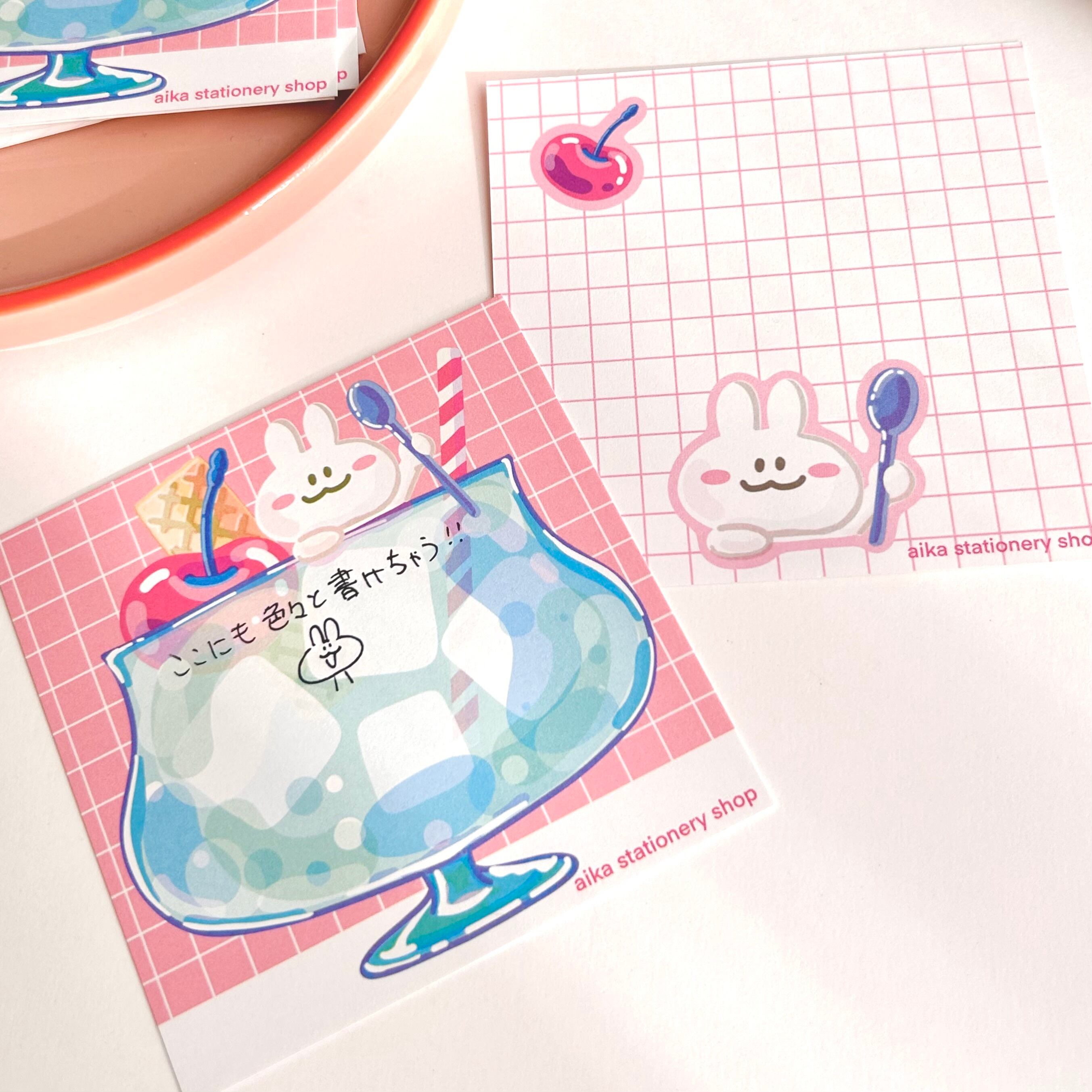 うさぎとクリームソーダのイラストが描かれたメモシートです。