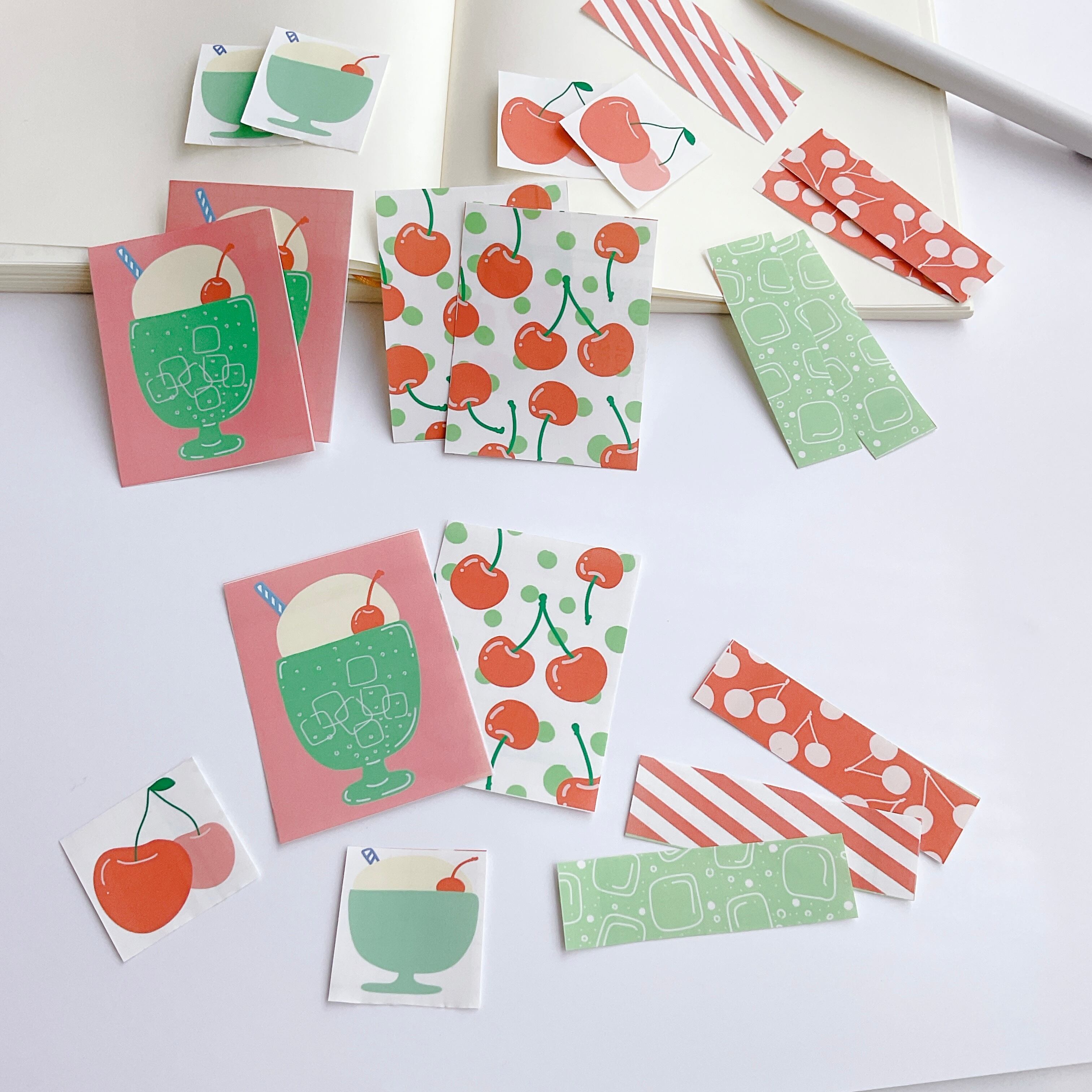 #アイス #メロンソーダ #シール #クリームソーダ #さくらんぼ #カフェ #cafe #氷 #可愛い #かわいい #手帳デコ #手帳デコ #デコシール #オリジナル文具 #素材 #赤 #緑#グリーン #ノート #コラージュ素材 #シールパック