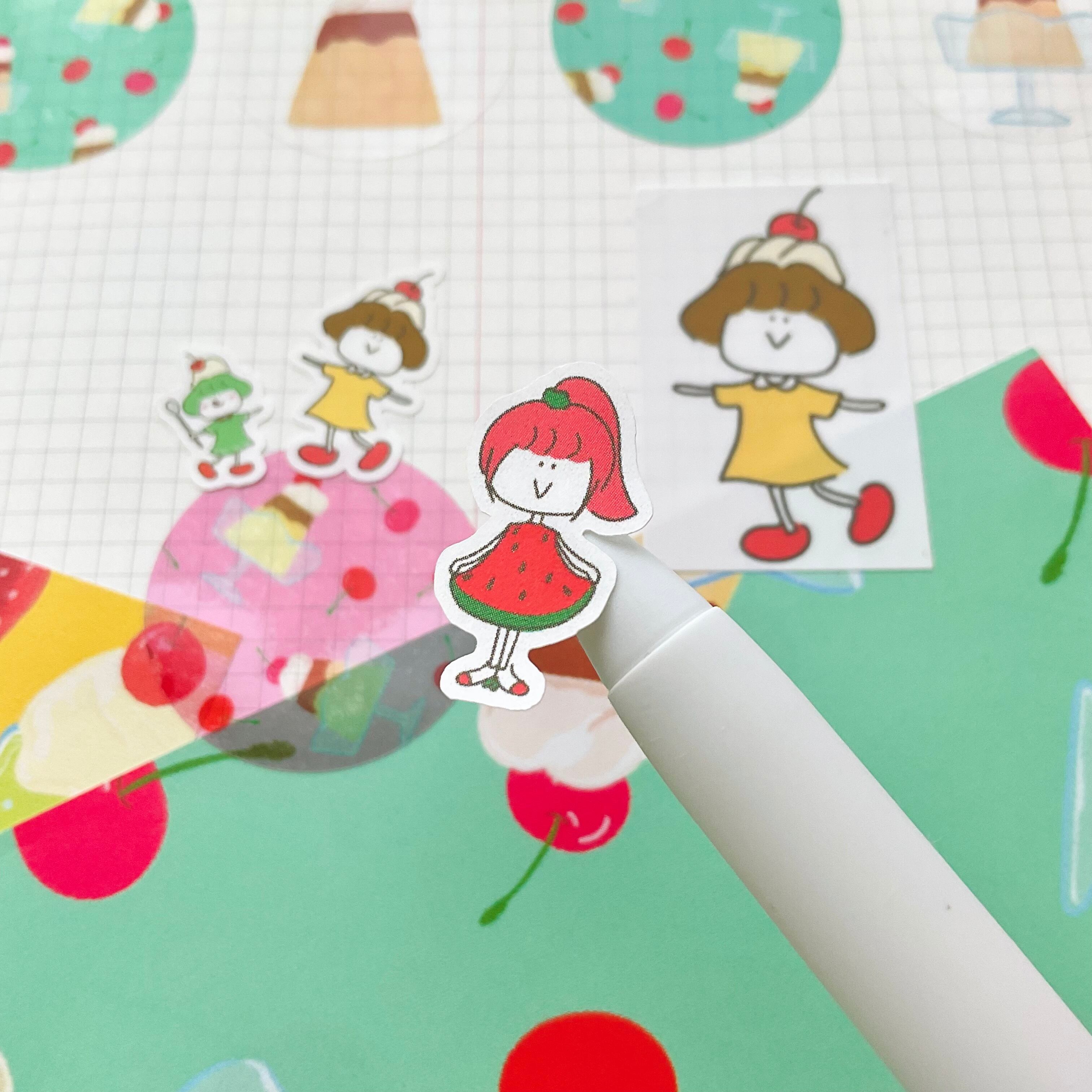 クリームソーダ、プリン、スイカ、そしてレモンな子達の甘くて可愛いシールです!手帳やノート、ラッピングやスマホやタブレットのデコレーションにぴったり。鮮やかな色合いとキュートなデザインで、癒される雰囲気を演出します。